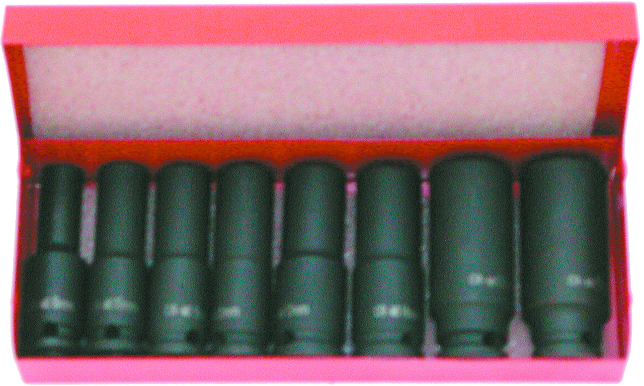 This is 8 mm 10 mm 11 mm 12 mm 13 mm 14 mm 17 mm 19 mm 3/8 in Drive Impact Socket manufactured by SAM. The manufacturer part number is 19131. It is available in metric package. The product has a drive size of 3/8 in. The deep impact socket socket offers profound benefits and is well-designed. The socket's size is 8 mm, 10 mm, 11 mm, 12 mm, 13 mm, 14 mm, 17 mm, 19 mm.