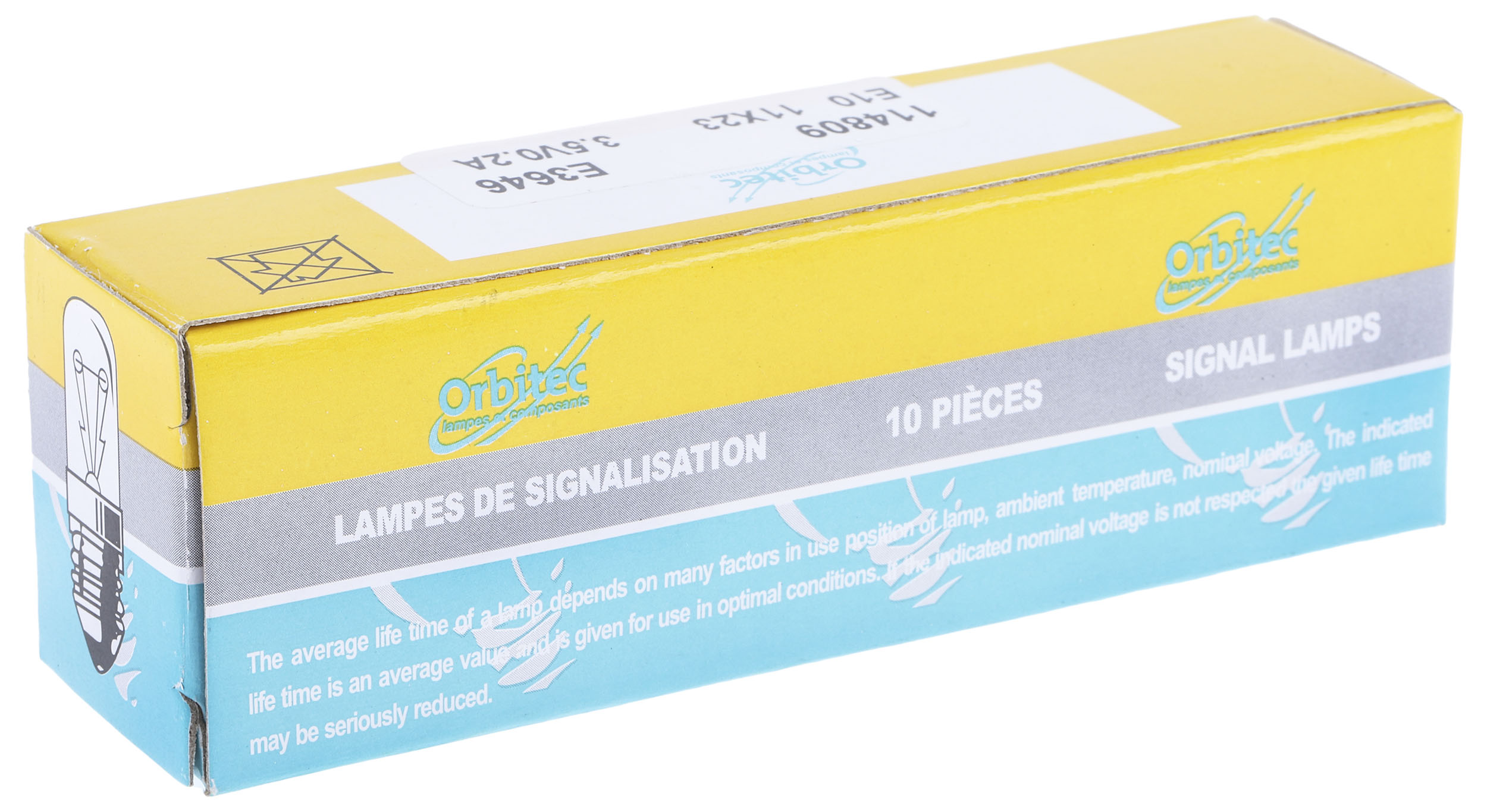 This is E10 Indicator Light Clear 3.5 V 200 mA 100h manufactured by Orbitec. The manufacturer part number is E3646. Its diameter is 11mm. The lens has an adorable clear colour. The product has a current rating of 200 ma. Moreover, the product has a nominal 3.5 v voltage rating. Features luminosity up to 7,6 lm. This product carries 0.7 w. The lamp base is e10. Its accurate length is 23 mm. Adding to this, it has a long life span for about 15h.