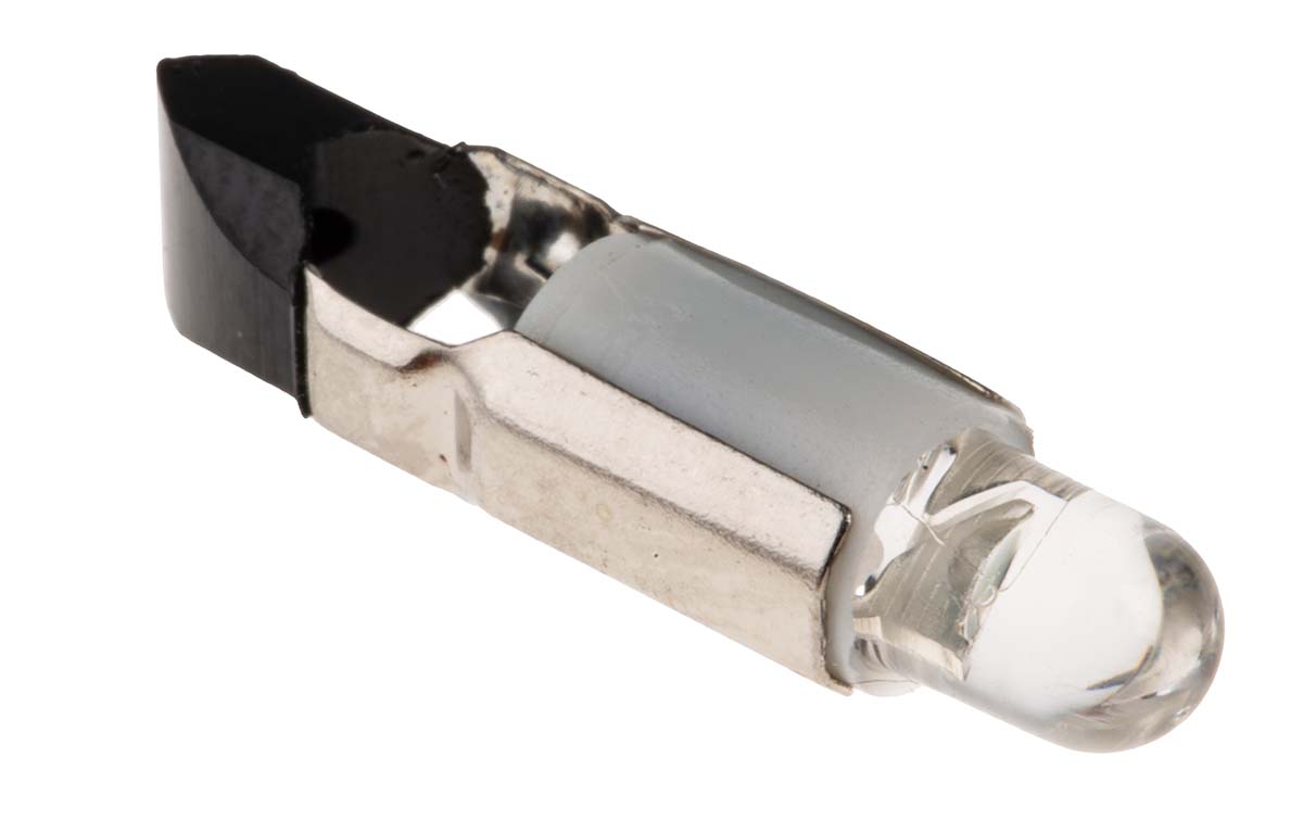 This is LED Reflector Bulb Telephone Slide White Single Chip 5.8 mm Lamp 5.5mm dia. 24 V dc manufactured by RS Pro. The manufacturer part number is 210-074. Its diameter is 5.5mm. Whereas, its peak wavelength is x=0.31 nm, y=0.32nm . In addition, it has a standard single chip type chip . The product has a current rating of 15ma. Moreover, the product has a nominal 24v dc voltage rating. The given intensity of the product is 1500mcd. The lamp base is telephone slide. Regarding light output colour, it outputs white light colour. Its accurate length is 22mm. It is a type of led lamp. Adding to this, it has a long life span for about 100000h.