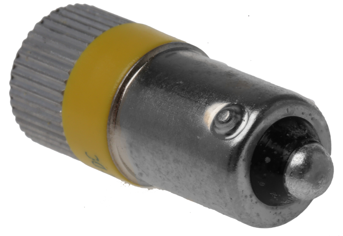 This is LED Reflector Bulb BA9s Yellow Multichip 10mm dia. 24 V ac/dc manufactured by RS Pro. The manufacturer part number is 211-033. Its diameter is 10mm. Whereas, its peak wavelength is 585nm . In addition, it has a standard multichip type chip . Moreover, the product has a nominal 24v dc voltage rating. The given intensity of the product is 120/110mcd. Furthermore, 180 ° is the viewing angle of the product. The lamp base is ba9s. Regarding light output colour, it outputs yellow light colour. Its accurate length is 28mm. It is a type of led lamp. Adding to this, it has a long life span for about 100000h.