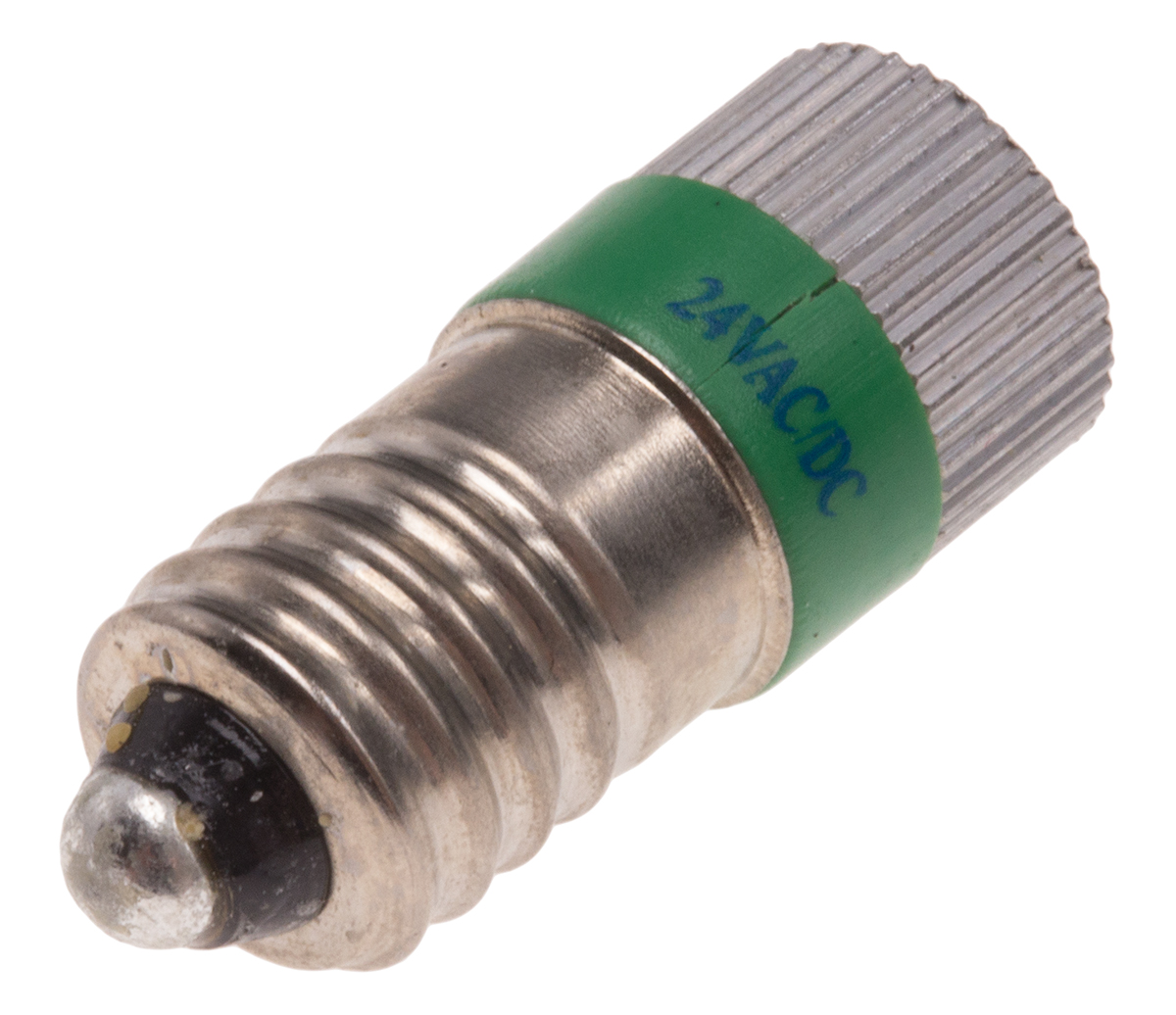 This is LED Reflector Bulb E10 Green Multichip 10 mm Lamp 10mm dia. 24 V ac/dc manufactured by RS Pro. The manufacturer part number is 204-760. Its diameter is 10mm. Whereas, its peak wavelength is 525nm . In addition, it has a standard multichip type chip . Moreover, the product has a nominal 24v ac/dc voltage rating. The given intensity of the product is 170/160mcd. Furthermore, 180 ° is the viewing angle of the product. The lamp base is e10. Regarding light output colour, it outputs green light colour. Its accurate length is 28mm. It is a type of led lamp. Adding to this, it has a long life span for about 100000h.