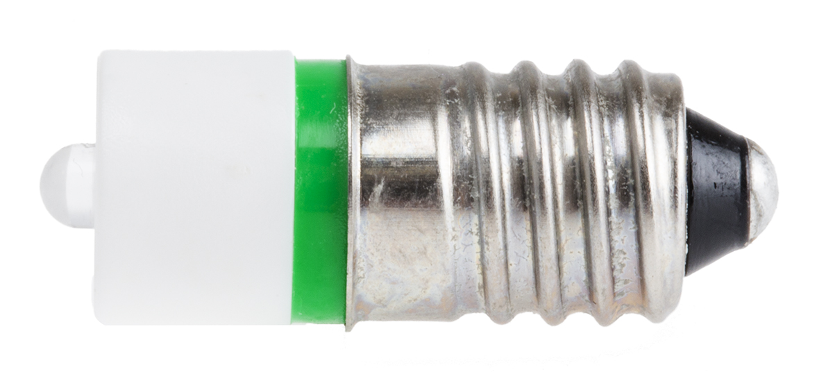 This is LED Reflector Bulb E10 Green Single Chip 10 mm Lamp 10mm dia. 230 V ac manufactured by RS Pro. The manufacturer part number is 210-311. Its diameter is 10mm. Whereas, its peak wavelength is 525nm . In addition, it has a standard single chip type chip . The product has a current rating of 9ma. Moreover, the product has a nominal 230v ac voltage rating. The given intensity of the product is 345mcd. The lamp base is e10. Regarding light output colour, it outputs green light colour. Its accurate length is 25.25mm. It is a type of led lamp. Adding to this, it has a long life span for about 100000h.
