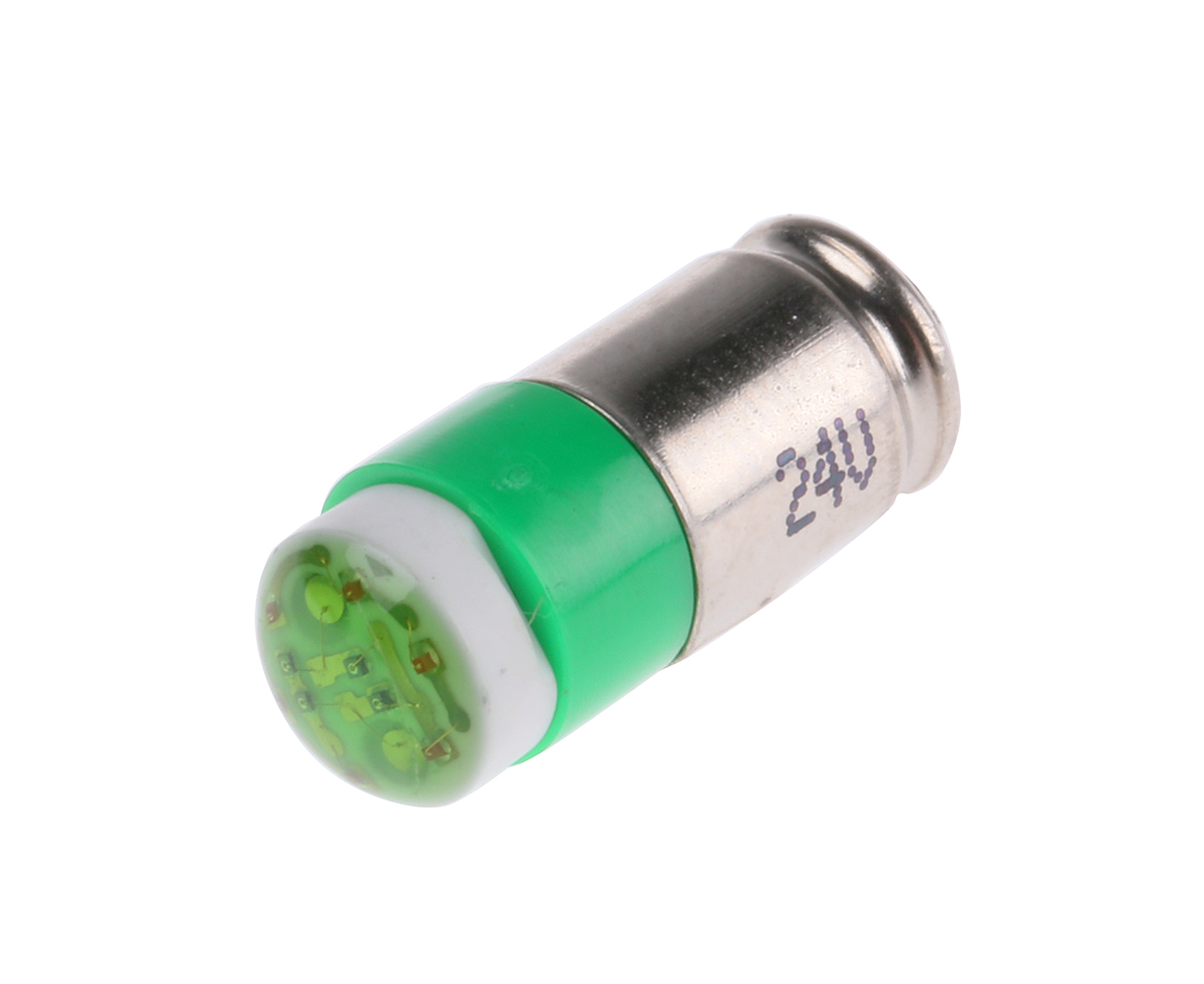 This is LED Reflector Bulb Midget Groove Green Multichip 5 mm Lamp 6mm dia. 24 V dc manufactured by RS Pro. The manufacturer part number is 209-822. Its diameter is 6mm. Whereas, its peak wavelength is 565nm . In addition, it has a standard multichip type chip . The product has a current rating of 14ma. Moreover, the product has a nominal 24v dc voltage rating. The given intensity of the product is 35mcd. Furthermore, 180 ° is the viewing angle of the product. The lamp base is midget groove. Regarding light output colour, it outputs green light colour. Its accurate length is 15.25mm. It is a type of led lamp. Adding to this, it has a long life span for about 100000h.