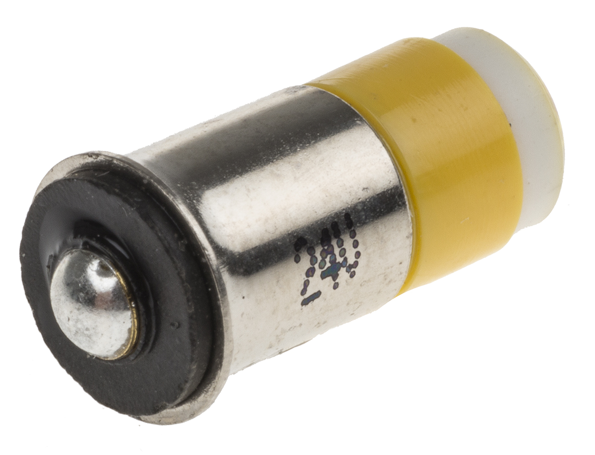 This is LED Reflector Bulb Midget Flange Yellow Multichip 5 mm Lamp 6mm dia. 24 V dc manufactured by RS Pro. The manufacturer part number is 209-995. Its diameter is 6mm. Whereas, its peak wavelength is 585nm . In addition, it has a standard multichip type chip . The product has a current rating of 14ma. Moreover, the product has a nominal 24v dc voltage rating. The given intensity of the product is 45mcd. Furthermore, 180 ° is the viewing angle of the product. The lamp base is midget flange. Regarding light output colour, it outputs yellow light colour. Its accurate length is 15.25mm. It is a type of led lamp. Adding to this, it has a long life span for about 100000h.
