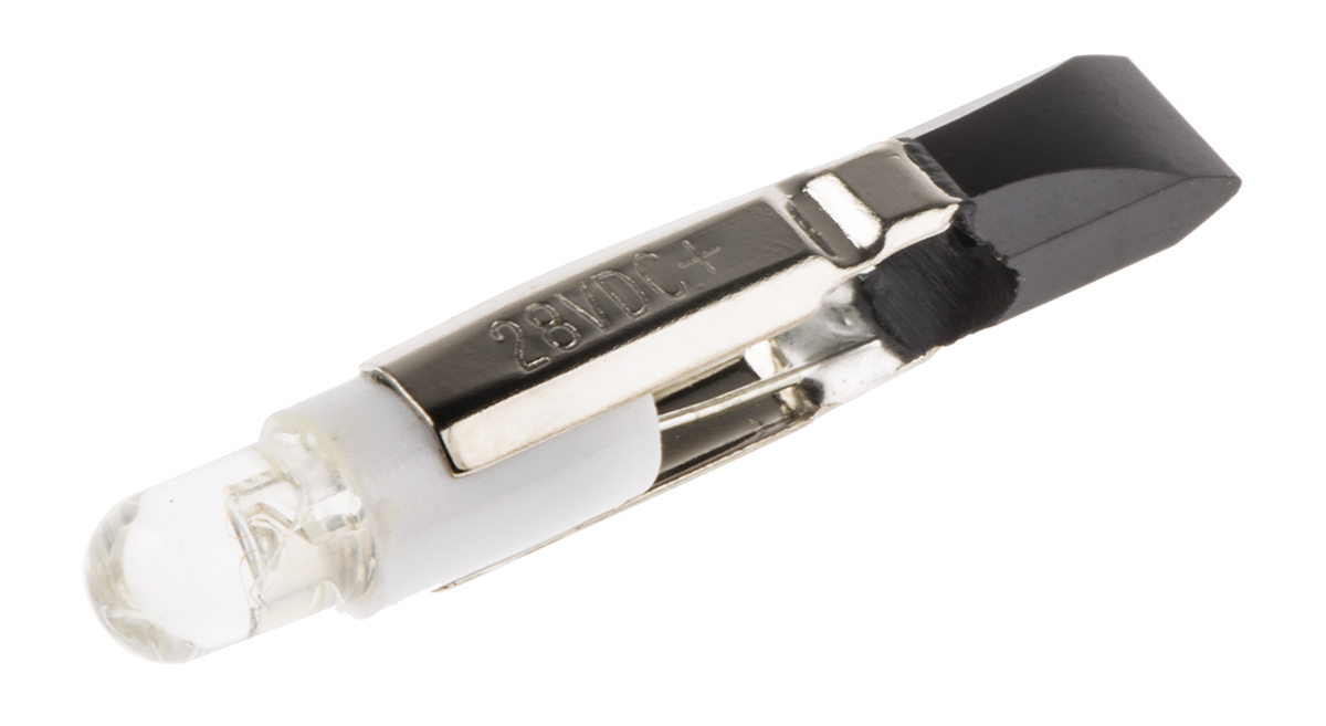 This is LED Reflector Bulb Telephone Slide White Single Chip 5.8 mm Lamp 5.5mm dia. 28 V ac/dc manufactured by RS Pro. The manufacturer part number is 228-902. Its diameter is 5.5mm. Whereas, its peak wavelength is x=0.31 nm, y=0.32nm . In addition, it has a standard single chip type chip . Moreover, the product has a nominal 28v dc voltage rating. The given intensity of the product is 1500mcd. The lamp base is telephone slide. Regarding light output colour, it outputs white light colour. Its accurate length is 29.5mm. It is a type of led lamp. Adding to this, it has a long life span for about 100000h.