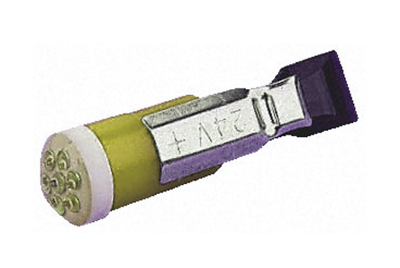 This is LED Reflector Bulb Telephone Slide Yellow Multichip 5.8 mm Lamp 5.5mm dia. 24 V dc manufactured by RS Pro. The manufacturer part number is 204-568. Its diameter is 5.5mm. Whereas, its peak wavelength is 585nm . In addition, it has a standard multichip type chip . The product has a current rating of 15ma. Moreover, the product has a nominal 24v dc voltage rating. The given intensity of the product is 32mcd. Furthermore, 180 ° is the viewing angle of the product. The lamp base is telephone slide. Regarding light output colour, it outputs yellow light colour. Its accurate length is 22mm. It is a type of led lamp. Adding to this, it has a long life span for about 60000h.