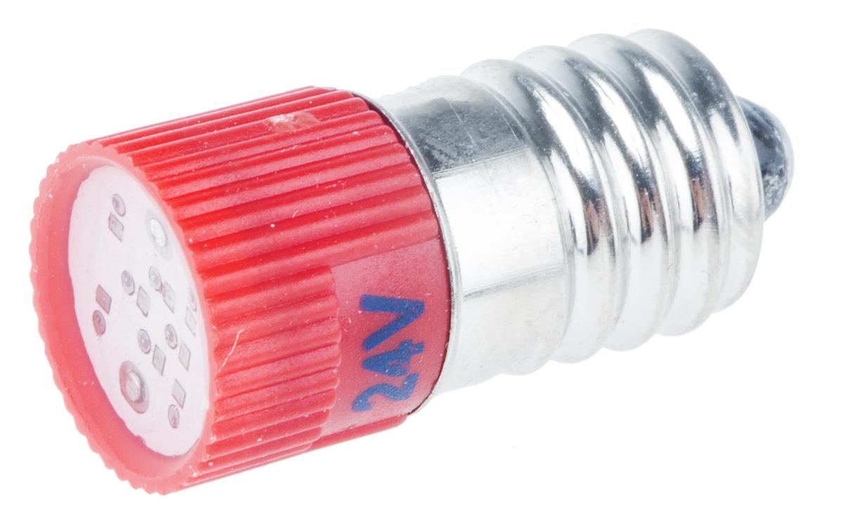This is LED Reflector Bulb E10 Red Multichip 10 mm Lamp 10mm dia. 24 V ac/dc manufactured by RS Pro. The manufacturer part number is 204-748. Its diameter is 10mm. Whereas, its peak wavelength is 630nm . In addition, it has a standard multichip type chip . Moreover, the product has a nominal 24v ac/dc voltage rating. The given intensity of the product is 110/105mcd. Furthermore, 180 ° is the viewing angle of the product. The lamp base is e10. Regarding light output colour, it outputs red light colour. Its accurate length is 28mm. It is a type of led lamp. Adding to this, it has a long life span for about 100000h.
