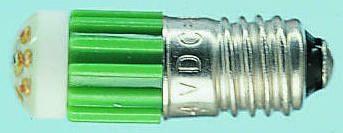 This is Green LED Reflector Bulb 28V dc E5 Base 6mm Diameter 45mcd manufactured by RS PRO. The manufacturer part number is 211-061. Its diameter is 6mm. Regarding light output colour, it outputs green light colour. In addition, it has a standard multichip type chip . The product has a current rating of 15ma. Moreover, the product has a nominal 28v dc voltage rating. The given intensity of the product is 45mcd. Furthermore, 180 ° is the viewing angle of the product. The lamp base is e5. Its accurate length is 18mm. Whereas, its peak wavelength is 565nm . Adding to this, it has a long life span for about 60000h.