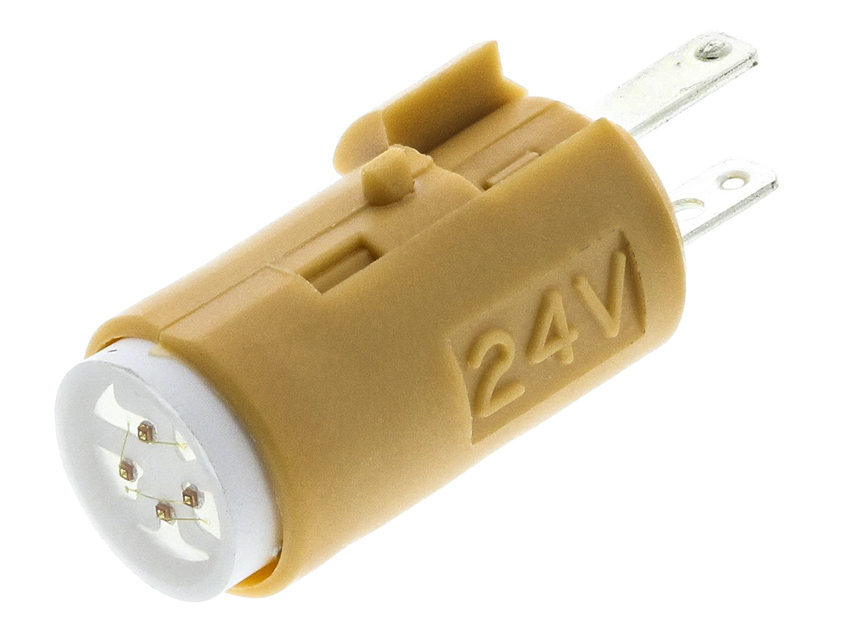 This is Yellow LED Indicator Lamp 24V dc manufactured by Omron. The manufacturer part number is A16-24DY. Regarding light output colour, it outputs yellow light colour. It is a type of led lamp. The product has a current rating of 10ma. Moreover, the product has a nominal 24v dc voltage rating.