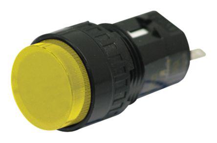 This is Indicator Indicator 16.2mm Mounting Hole Size Yellow LED Solder Termination 18 mm Lamp Size 12 V dc manufactured by Idec. The manufacturer part number is AP6M111-Y. Regarding light output colour, it outputs yellow light colour. The product has a current rating of 22 ma. In addition, It features 16.2mm of mounting hole size. Moreover, the product has a nominal 12 v dc voltage rating. Furthermore, the bezel has a classic black colour. Its accurate length is 31 mm. The product is designed with a solder termination. Its lamp is 18 mm in size . It is a type of led lamp.