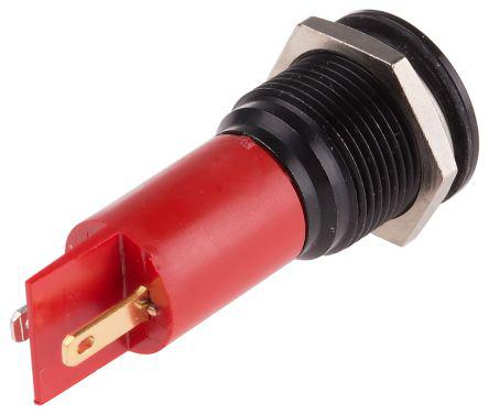 This is Prominent Indicator Panel Mount 16mm Mounting Hole Size Red LED Solder Tab Termination 10 mm Lamp Size 130 V ac manufactured by RS Pro. The manufacturer part number is 208-992. Regarding light output colour, it outputs red light colour. Its lamp is 10 mm in size . In addition, It features 16mm of mounting hole size. Moreover, the product has a nominal 130 v ac voltage rating. Furthermore, the bezel has a classic black chrome colour. The given intensity of the product is 80 mcd. Its accurate length is 62.5 mm. The bezel features a prominent style. The product is designed with a solder tab termination. The product has a current rating of 6 ma. It is a type of led lamp.