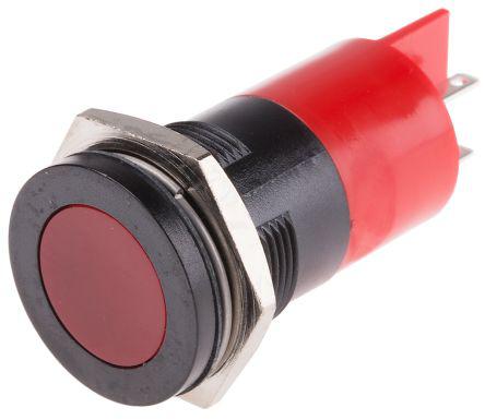 This is Flush Indicator Panel Mount 22mm Mounting Hole Size Red LED Tab Termination 16 mm Lamp Size 130 V ac manufactured by RS Pro. The manufacturer part number is 207-264. Regarding light output colour, it outputs red light colour. Its lamp is 16 mm in size . In addition, It features 22mm of mounting hole size. It is IP rated with ip67. Furthermore, the bezel has a classic black colour. Moreover, the product has a nominal 130 v ac voltage rating. The given intensity of the product is 70 mcd. Its accurate length is 64 mm. The bezel features a flush style. The product is designed with a tab termination. The product has a current rating of 6 ma. It is a type of led lamp.