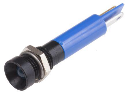 This is Blue LED Indicator 2 V dc 5 mm Lamp Size 8mm Mounting Hole Size manufactured by RS Pro. The manufacturer part number is 209-080. Regarding light output colour, it outputs blue light colour. Its lamp is 5 mm in size . In addition, It features 8mm of mounting hole size. Moreover, the product has a nominal 2 v dc voltage rating. Furthermore, the bezel has a classic black chrome colour. The given intensity of the product is 90 mcd. Its accurate length is 23 mm. The bezel features a recessed style. The product is designed with a solder tab termination. The product has a current rating of 20 ma. It is a type of led lamp.
