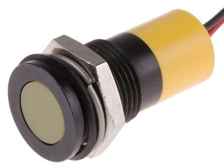 This is Flush Indicator Panel Mount 14mm Mounting Hole Size Yellow LED Lead Wires Termination 10 mm Lamp Size 220 V ac manufactured by RS Pro. The manufacturer part number is 703-9027. Regarding light output colour, it outputs yellow light colour. Its lamp is 10 mm in size . In addition, It features 14mm of mounting hole size. It is IP rated with ip67. Furthermore, the bezel has a classic black chrome colour. Moreover, the product has a nominal 220 v ac voltage rating. The given intensity of the product is 4 mcd. Its accurate length is 30.6 mm. The bezel features a flush style. The product is designed with a lead wires termination. The product has a current rating of 3 ma. It is a type of led lamp.