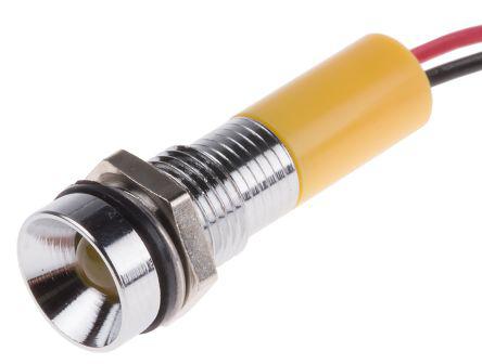 This is Recessed Indicator Panel Mount 8mm Mounting Hole Size Yellow LED Lead Wires Termination 5 mm Lamp Size 12 V dc manufactured by RS Pro. The manufacturer part number is Q8R3CXXY12E. Regarding light output colour, it outputs yellow light colour. Its lamp is 5 mm in size . In addition, It features 8mm of mounting hole size. It is IP rated with ip67. Furthermore, the bezel has a classic chrome colour. Moreover, the product has a nominal 12 v dc voltage rating. The given intensity of the product is 40 mcd. Its accurate length is 25.5 mm. The bezel features a recessed style. The product is designed with a lead wires termination. The product has a current rating of 20 ma. It is a type of led lamp. It comes in panel mount configuration.