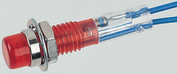 This is Prominent Indicator Panel Mount 6.4mm Mounting Hole Size Red neon Lead Wires Termination 7.5 mm Lamp Size 125 V manufactured by CAMDENBOSS. The manufacturer part number is 515205-125-T/RED. Regarding light output colour, it outputs red light colour. Its lamp is 7.5 mm in size . In addition, It features 6.4mm of mounting hole size. The product is available in panel mount configuration. Moreover, the product has a nominal 125v voltage rating. Furthermore, the bezel has a classic chrome colour. The bezel features a prominent style. The product is designed with a lead wires termination. The product has a current rating of 1ma. It is a type of neon lamp.