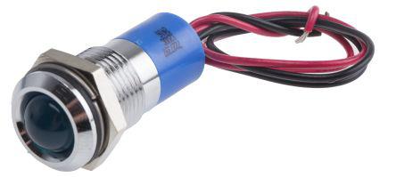 This is Prominent Indicator LED wires Panel Mount 14mm Mounting Hole Size Blue LED Lead Wires Termination 10 mm Lamp Size manufactured by RS Pro. The manufacturer part number is Q14P3CXXB12E. Regarding light output colour, it outputs blue light colour. Its lamp is 10 mm in size . In addition, It features 14mm of mounting hole size. It is IP rated with ip67. Furthermore, the bezel has a classic chrome colour. Moreover, the product has a nominal 12 v dc voltage rating. The given intensity of the product is 280 mcd. Its accurate length is 28.75 mm. The bezel features a prominent style. The product is designed with a lead wires termination. The product has a current rating of 20 ma. It is a type of led lamp. It comes in panel mount configuration.