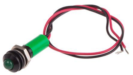 This is Prominent Indicator Panel Mount 8mm Mounting Hole Size Green LED Lead Wires Termination 5 mm Lamp Size 220 V ac manufactured by RS Pro. The manufacturer part number is Q8P3BXXHG220E. Regarding light output colour, it outputs green light colour. Its lamp is 5 mm in size . In addition, It features 8mm of mounting hole size. It is IP rated with ip67. Furthermore, the bezel has a classic black chrome colour. Moreover, the product has a nominal 220 v ac voltage rating. The given intensity of the product is 40 mcd. Its accurate length is 22.5 mm. The bezel features a prominent style. The product is designed with a lead wires termination. The product has a current rating of 3 ma. It is a type of led lamp. It comes in panel mount configuration.