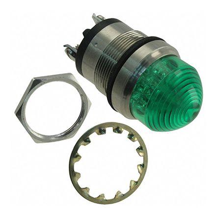 This is Green LED Indicator 12 V dc 25.4mm Mounting Hole Size IP66 manufactured by Dialight. The manufacturer part number is 556-3603-304F. Regarding light output colour, it outputs green light colour. The product has a current rating of 60 ma. In addition, It features 25.4mm of mounting hole size. It is IP rated with ip66. Furthermore, the bezel has a classic silver colour. Moreover, the product has a nominal 12 v dc voltage rating. The given intensity of the product is 1800 fl. Its accurate length is 27.7 mm. The bezel features a prominent style. The product is designed with a screw termination. It is a type of led lamp.