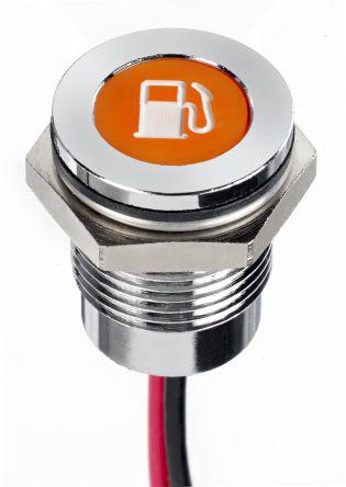 This is Orange LED Indicator 12 V dc 10 mm Lamp Size 14mm Mounting Hole Size IP67 manufactured by Apem. The manufacturer part number is Q14F5CXXO12E-0FP. Regarding light output colour, it outputs orange light colour. Its lamp is 10 mm in size . In addition, It features 14mm of mounting hole size. It is IP rated with ip67. Furthermore, the bezel has a classic chrome colour. Moreover, the product has a nominal 12 v dc voltage rating. The given intensity of the product is 200 mcd. Its accurate length is 19.4 mm. The bezel features a flush style. The product is designed with a lead wires termination. The product has a current rating of 20 ma. It is a type of led lamp.