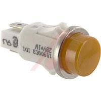 This is Indicator; Amber; Incandescent; 28 V; White Nylon; Transparent; Polycarbonate manufactured by Chicago Miniature. The manufacturer part number is 1090QC3-28V.