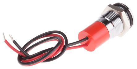 This is Prominent Indicator LED wires Panel Mount 14mm Mounting Hole Size Red LED Lead Wires Termination 10 mm Lamp Size manufactured by RS Pro. The manufacturer part number is Q14P3CXXR24E. Regarding light output colour, it outputs red light colour. Its lamp is 10 mm in size . In addition, It features 14mm of mounting hole size. It is IP rated with ip67. Furthermore, the bezel has a classic chrome colour. Moreover, the product has a nominal 24 v dc voltage rating. The given intensity of the product is 80 mcd. Its accurate length is 28.75 mm. The bezel features a prominent style. The product is designed with a lead wires termination. The product has a current rating of 20 ma. It is a type of led lamp. It comes in panel mount configuration.