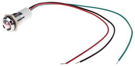 This is Prominent Indicator LED wires Panel Mount 14mm Mounting Hole Size Red/Green/Yellow LED Lead Wires Termination manufactured by RS Pro. The manufacturer part number is Q14P3CZZRYG12E. Regarding light output colour, it outputs red/green/yellow light colour. Its lamp is 10 mm in size . In addition, It features 14mm of mounting hole size. It is IP rated with ip67. Furthermore, the bezel has a classic chrome colour. Moreover, the product has a nominal 12 v dc voltage rating. The given intensity of the product is 50 (green) mcd, 50 (yellow) mcd, 80 (red) mcd. Its accurate length is 28.75 mm. The bezel features a prominent style. The product is designed with a lead wires termination. The product has a current rating of 20 ma. It is a type of led lamp. It comes in panel mount configuration.