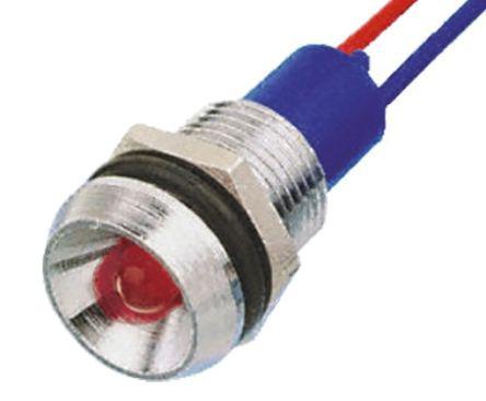 This is Red LED Indicator 110 V ac 5 mm Lamp Size 12.7mm Mounting Hole Size manufactured by Tranilamp. The manufacturer part number is LMR12/110AC/3 RED IP65. Regarding light output colour, it outputs red light colour. Its lamp is 5 mm in size . In addition, It features 12.7mm of mounting hole size. Moreover, the product has a nominal 110 v ac voltage rating. Furthermore, the bezel has a classic chrome colour. The given intensity of the product is 7 mcd. Its accurate length is 30 mm. The bezel features a recessed style. The product is designed with a lead wires termination. The product has a current rating of 20 ma. It is a type of led lamp.