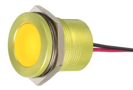 This is Yellow LED Indicator 28 V 18 mm Lamp Size 22mm Mounting Hole Size IP67 manufactured by RS Pro. The manufacturer part number is 898-7775. Priced to Clear Options - yes. Regarding light output colour, it outputs yellow light colour. Its lamp is 18 mm in size . In addition, It features 22mm of mounting hole size. It is IP rated with ip67. Furthermore, the bezel has a classic yellow colour. Moreover, the product has a nominal 28 v voltage rating. The given intensity of the product is 1250 mcd. Its accurate length is 24.5 mm. The bezel features a flush style. The product is designed with a lead wires termination. The product has a current rating of 40 ma. It is a type of led lamp.