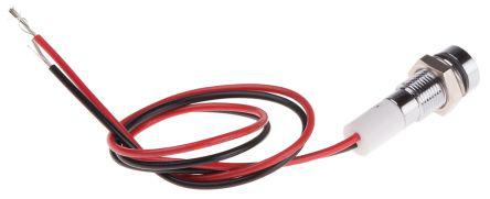 This is Recessed Indicator Panel Mount 6mm Mounting Hole Size Red/Green LED Lead Wires Termination 3 mm Lamp Size 24 V dc manufactured by RS Pro. The manufacturer part number is Q6R3CYYRG24E. Regarding light output colour, it outputs red/green light colour. Its lamp is 3 mm in size . In addition, It features 6mm of mounting hole size. It is IP rated with ip67. Furthermore, the bezel has a classic chrome colour. Moreover, the product has a nominal 24 v dc voltage rating. The given intensity of the product is 15 (green) mcd, 20 (red) mcd. Its accurate length is 18.75 mm. The bezel features a recessed style. The product is designed with a lead wires termination. The product has a current rating of 20 ma. It is a type of led lamp. It comes in panel mount configuration.
