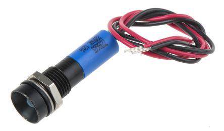 This is Recessed Indicator Panel Mount 8mm Mounting Hole Size Blue LED Lead Wires Termination 5 mm Lamp Size 220 V ac manufactured by RS Pro. The manufacturer part number is Q8R3BXXHB220E. Regarding light output colour, it outputs blue light colour. Its lamp is 5 mm in size . In addition, It features 8mm of mounting hole size. It is IP rated with ip67. Furthermore, the bezel has a classic black chrome colour. Moreover, the product has a nominal 220 v ac voltage rating. The given intensity of the product is 90 mcd. Its accurate length is 25.5 mm. The bezel features a recessed style. The product is designed with a lead wires termination. The product has a current rating of 3 ma. It is a type of led lamp. It comes in panel mount configuration.