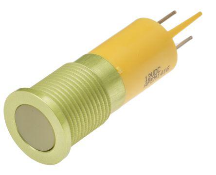 This is Indicator Yellow IP67 12 V dc 14mm Mounting Hole Size Faston Solder Lug Termination manufactured by RS Pro. The manufacturer part number is 111-6559. Priced to Clear Options - yes. Regarding light output colour, it outputs yellow light colour. Its lamp is 10 mm in size . In addition, It features 14mm of mounting hole size. It is IP rated with ip67. Furthermore, the bezel has a classic yellow colour. Moreover, the product has a nominal 12 v dc voltage rating. The given intensity of the product is 250 mcd. Its accurate length is 35.6 mm. The bezel features a flush style. The product is designed with a faston, solder lug termination. The product has a current rating of 20 ma. It is a type of led lamp.