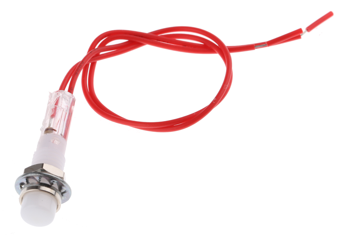 This is Orange neon Indicator 240 V 7.5 mm Lamp Size 6.4mm Mounting Hole Size manufactured by CAMDENBOSS. The manufacturer part number is IND515205-240-T/OPL. Regarding light output colour, it outputs orange light colour. The product has a current rating of 800µa. In addition, It features 6.4mm of mounting hole size. Moreover, the product has a nominal 240v voltage rating. Furthermore, the bezel has a classic chrome colour. The bezel features a prominent style. The product is designed with a lead wires termination.
