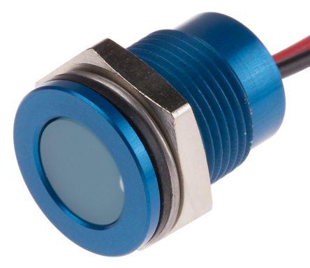 This is Blue Indicator 12 V dc 10 mm Lamp Size 14mm Mounting Hole Size IP67 manufactured by RS Pro. The manufacturer part number is 111-6577. Priced to Clear Options - yes. Regarding light output colour, it outputs blue light colour. Its lamp is 10 mm in size . In addition, It features 14mm of mounting hole size. It is IP rated with ip67. Furthermore, the bezel has a classic blue colour. Moreover, the product has a nominal 12 v dc voltage rating. The given intensity of the product is 100 mcd. Its accurate length is 19.4 mm. The bezel features a flush style. The product is designed with a lead wires termination. The product has a current rating of 20 ma. It is a type of led lamp.