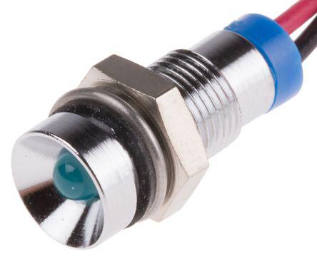 This is Blue Indicator 2 V dc 3 mm Lamp Size 6mm Mounting Hole Size IP67 manufactured by RS Pro. The manufacturer part number is 722-7707. Regarding light output colour, it outputs blue light colour. Its lamp is 3 mm in size . In addition, It features 6mm of mounting hole size. It is IP rated with ip67. Furthermore, the bezel has a classic chrome colour. Moreover, the product has a nominal 2 v dc voltage rating. The given intensity of the product is 65 mcd. Its accurate length is 13.7 mm. The bezel features a recessed style. The product is designed with a lead wires termination. The product has a current rating of 20 ma. It is a type of led lamp.