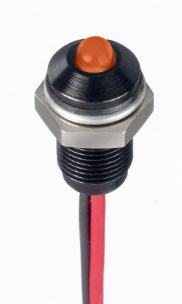 This is Orange Panel LED 10.8 → 13.2 V dc 3 mm Lamp Size 6mm Mounting Hole Size IP67 manufactured by RS Pro. The manufacturer part number is 171-3805. Regarding light output colour, it outputs orange light colour. Its lamp is 3 mm in size . In addition, It features 6mm of mounting hole size. It is IP rated with ip67. Furthermore, the bezel has a classic black chrome colour. Moreover, the product has a nominal 10.8 → 13.2 v dc voltage rating. The given intensity of the product is 4500 mcd. Its accurate length is 13.5 mm. The bezel features a prominent style. The product is designed with a lead wires termination. The product has a current rating of 20 ma. It is a type of led lamp.