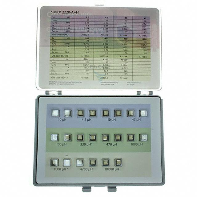This is manufactured by EPCOS - TDK Electronics. The manufacturer part number is B82442X0001. Additionally, the product is designed with wirewound Style. It is assigned with possible HTSUS value of 8504.50.8000. The product is rohs3 compliant. It has 1µh ~ 10mh of inductance range. It is made from durable ferrite. In addition, it is reach unaffected. It is shipped in case package . Its typical moisture sensitivity level is 1 (unlimited). It also includes 2220 (5750 metric) packages. Available in 66 pieces (11 values - 6 each) quantity. The fixed is designed to provide robust applications in a variety of specific settings. The product is available in surface mount configuration. The product is automotive, a grade of class. The product 2220-a, 2220-h, is a highly preferred choice for users. The product is designated with the ear99 code number.
