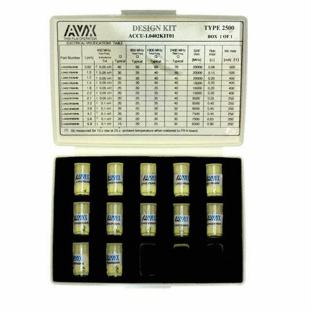 This is manufactured by KYOCERA AVX. The manufacturer part number is ACCU-L 0402KIT01. Additionally, the product is designed with thin film Style. It is assigned with possible HTSUS value of 8504.50.8000. The product is rohs3 compliant. It has 820ph ~ 6.8nh of inductance range. It is made from durable non-magnetic. In addition, it is reach unaffected. It is shipped in case package . Its typical moisture sensitivity level is 1 (unlimited). It has a long 14 weeks standard lead time. It also includes 0402 (1005 metric) packages. Available in 240 pieces (12 values - 20 each) quantity. The fixed is designed to provide robust applications in a variety of specific settings. The product is available in surface mount configuration. The product accu-l®, is a highly preferred choice for users. The product is designated with the ear99 code number.