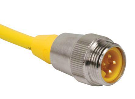 This is Cable assembly with a Minifast Plug and a Minifast Socket manufactured by Turck. The manufacturer part number is RSM RKM 40-10M/S90. The connector A is minifast connector. While the connector B is minifast. Its connector B housing is of socket gender . On the other hand, the connector's housing (A) is a plug.