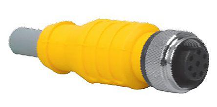 This is Cable assembly with a M12 Connector Socket and an Unterminated End 4 A 250 V IP67 manufactured by Turck. The manufacturer part number is RKS 4.5T-2. Features 22 awg, 24 (drain) awg - American Wire Gauge. The product has a current rating of 4 a. The sheath is constructed from durable and adorable polyvinyl chloride pvc material. It is IP rated with ip67. Moreover, this cable has a multicore shape. While the connector B is unterminated. It has a maximum operating temperature of +105°c. Moreover, the product has a nominal 250 v voltage rating. The connector A is m12 connector. The sheath has an adorable grey colour. The conductor is made from brass material. It has a robust pvc insulation material. Whereas, the minimum operating temperature of the product is -40°c. The product consists of 5 cores. On the other hand, the connector's housing (A) is a socket. Its outer diameter is 15mm.