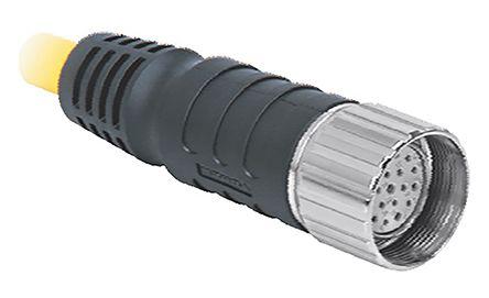 This is Cable assembly with a M23 Socket and an Unterminated End 2 A 9 A 150 V IP67 manufactured by Turck. The manufacturer part number is CKM 19-11-5. Features 18 awg, 22 (drain) awg, 22 awg - American Wire Gauge. The product has a current rating of 2 a, 9 a. The sheath is constructed from durable and adorable polyvinyl chloride pvc material. It is IP rated with ip67. Moreover, this cable has a multicore shape. While the connector B is unterminated. It has a maximum operating temperature of +105°c. Moreover, the product has a nominal 150 v voltage rating. The connector A is m23 connector. The sheath has an adorable yellow colour. The conductor is made from brass material. It has a robust pvc insulation material. Whereas, the minimum operating temperature of the product is -40°c. The product consists of 3, 8 cores. On the other hand, the connector's housing (A) is a socket. Its outer diameter is 26mm.