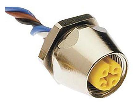 This is Cable assembly with a M12 Connector Socket and an Unterminated End 4 A 250 V IP68 manufactured by Turck. The manufacturer part number is FK 4.4-0.5. Features 22 awg - American Wire Gauge. The product has a current rating of 4 a. It is IP rated with ip68. Moreover, this cable has a multicore shape. While the connector B is unterminated. It has a maximum operating temperature of +105°c. Moreover, the product has a nominal 250 v voltage rating. The connector A is m12 connector. The conductor is made from brass material. It has a robust pvc insulation material. Whereas, the minimum operating temperature of the product is -40°c. The product consists of 4 cores. On the other hand, the connector's housing (A) is a socket. Its outer diameter is 17mm.