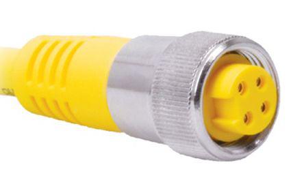 This is Cable assembly with a RK 36 Socket and an Unterminated End manufactured by Turck. The manufacturer part number is RK 36-4M. Features 16 awg - American Wire Gauge. Furthermore, the product is shielded with unshielded. The sheath is constructed from durable and adorable polyvinyl chloride pvc material. While the connector B is unterminated. The connector A is straight 7/8-16 connector. The sheath has an adorable yellow colour. Its accurate length is 4m. Connector A consists of 3 contacts. On the other hand, the connector's housing (A) is a socket.