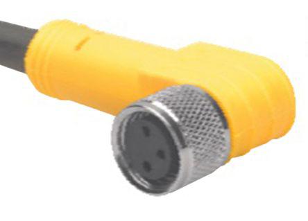 This is Cable assembly with a 3 Pole M8 Socket and an Unterminated End manufactured by Turck. The manufacturer part number is PKW 3M-2/S90/S101. While the connector B is unterminated. The connector A is m8 connector. Connector A consists of 3 contacts. On the other hand, the connector's housing (A) is a socket.