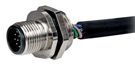 This is Connector & Cable with a 12 Pole Straight Male M12 Female and a Wire Lead 1.5 A 30 V 200mm Cable manufactured by RS Pro. The manufacturer part number is 144-7614. Connector A consists of 12 contacts. Features 26 - American Wire Gauge. Furthermore, the product is shielded with unshielded. The product complies with all safety standards, such as ce, tuv certified. It is IP rated with ip67. Moreover, this cable has a multicore shape. While the connector B is unterminated. Moreover, the product has a nominal 30 v voltage rating. The connector A is straight m12 connector. The conductor is made from cuzn material. Its accurate length is 200mm. The product has 0.14 mm² cross section area. Whereas, the minimum operating temperature of the product is -25°c. The product consists of 12 cores. The product has a current rating of 1.5 a. The conductor has ≥100 mω resistance. It has a maximum operating temperature of +75°c. On the other hand, the connector's housing (A) is a plug.