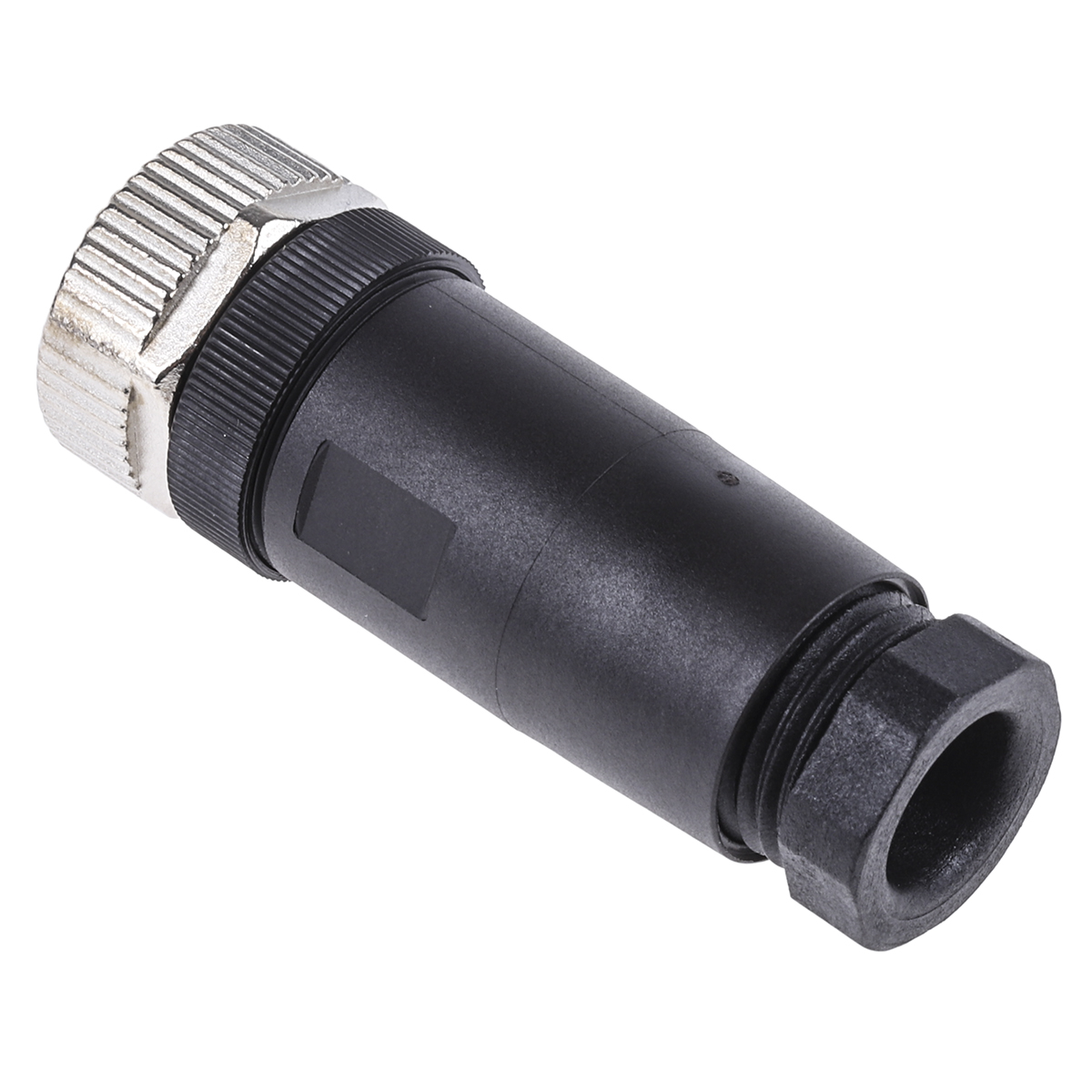 With a standard M12 metric thread, this connector supports data and signal transmissions in line with IEC 61076-2-101 standards. Its nickel-plated brass housing ensures mechanical durability and EMC protection, while the PA (polyamide) insert delivers electrical insulation and heat resistance. The IP67-rated sealing (when mated) makes it ideal for applications exposed to dust, water jets, or harsh industrial contaminants.
