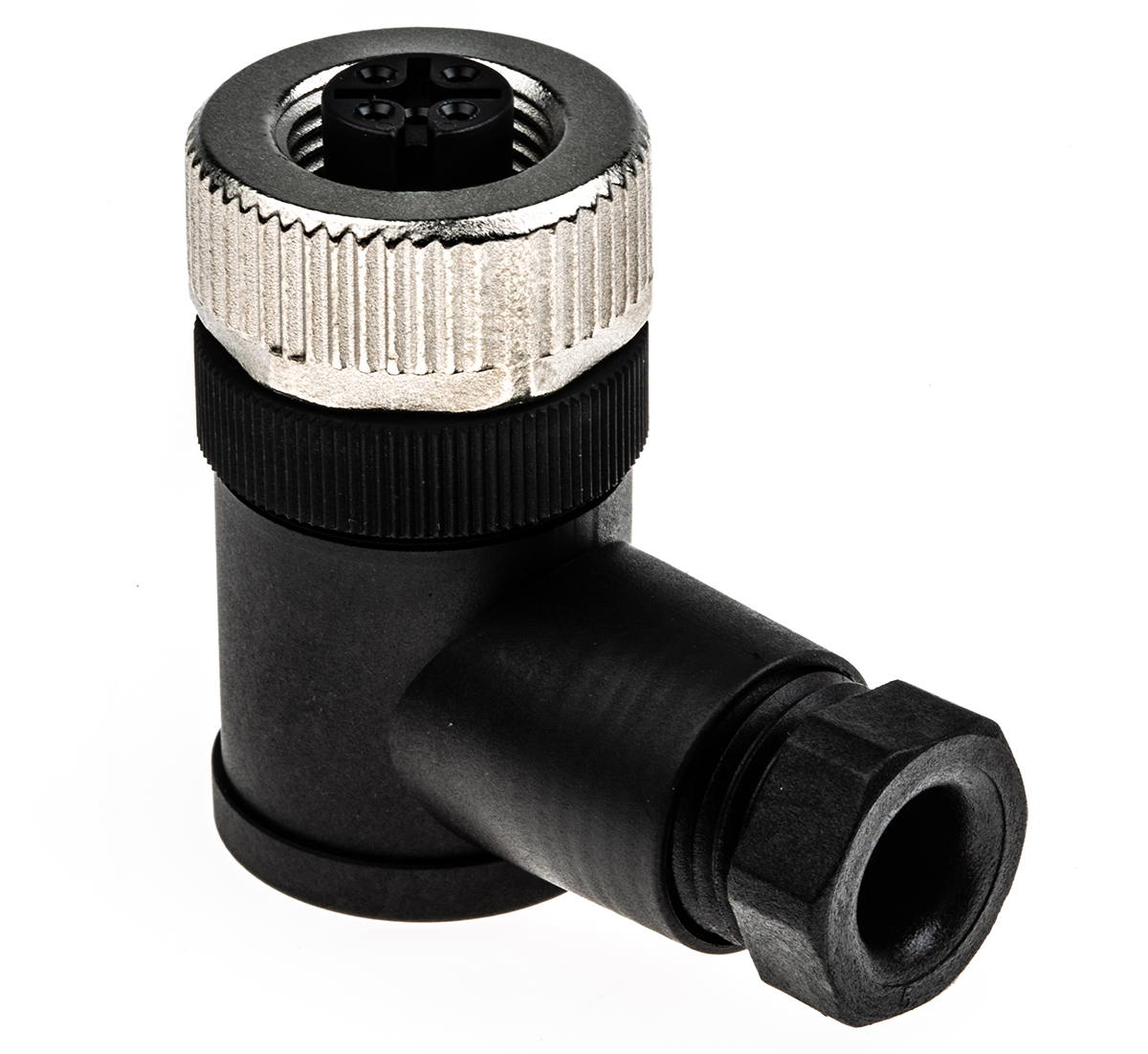 You’d choose this connector socket when you need a sealed, 4‑pole M12 female socket that can resist water and dust, with a right‑angle layout to ease cable routing in tight spaces, while still supporting good current and voltage ratings.