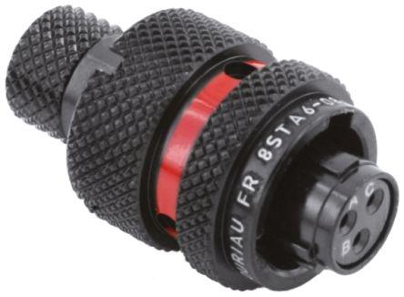 This is 8STA Series 3 Pole Cable Mount Connector Plug with Female Contacts IP67 manufactured by Souriau. The manufacturer part number is 8STA60898SN. The product has a current rating of 7.5a. It is a type of bayonet mating. The product is available in cable mount configuration. It is IP rated with ip67. The product 8sta, is a highly preferred choice for users. It has straight body orientation. It allows crimp, pc tail termination method. This female contact is widely suited for specific applications. The product also features robust aluminium housing material. It comprises a plug. The connector has standard size. The high-quality gold is used as contact plating material. The shell has 8 size. The product contains 3 contacts. The product is made from sturdy copper materials.