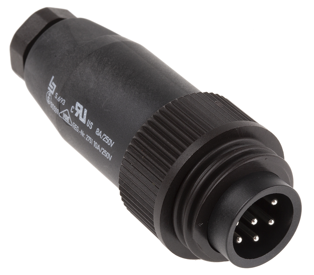 Binder 693 Series Industrial Connector, RD 24 Range Binder Series 693 connectors have plastic shells with an IP67 rating when mated. Contacts are silver-plated with up to 16 A per contact. RD 24 Connectors accept overall diameter cable sizes from 6 to 14 mm. Connector contacts have screw, crimp or solder termination. An internal strain relief gives added strength to the attached cable. Connector with screw locking IP67 rated when mated