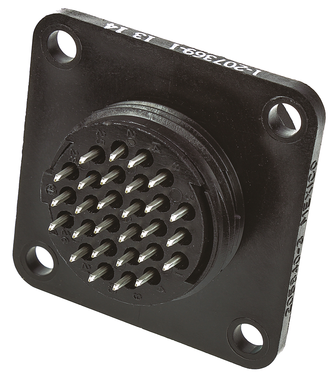 This is 28 Pole Panel Mount Connector Socket with Male Contacts manufactured by TE Connectivity. The manufacturer part number is 1-207369-1. The high-quality gold is used as contact plating material. The product is available in panel mount configuration. The product cpc series 2, is a highly preferred choice for users. It has straight body orientation. It allows solder termination method. This male contact is widely suited for specific applications. It comprises a socket. The shell has 17 size. The product contains 28 contacts. The connector has standard size.